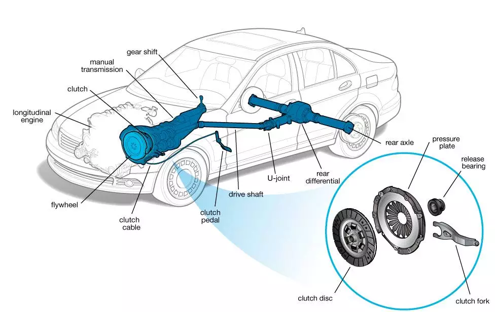 클러치는 엔진과 변속기 사이에 장착되어 변속기에 전달되는 엔진의 동력을 필요에 따라 연결하고 차단하는 장치입니다. 엔진 시동을 걸때나 기어 변속을 할 때는 엔진과의 연결을 차단하고 주행 할 때는 엔진과 변속기 연결을 유지하여 동력을 구동 바퀴에 전달합니다. 클러치에 의해 엔진의 동력을 필요에 따라 연결하거나 차단 하기 때문에 자동차는 정지 상태에서 진동없이 부드럽게 출발을 할 수 있습니다. 또한 과부하가 발생 하더라도 엔진과 변속기의 손상을 방지 할 수 있죠.