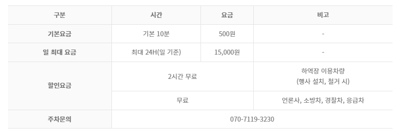 기본 10분에 500원, 일 최대 요금 15,000원입니다