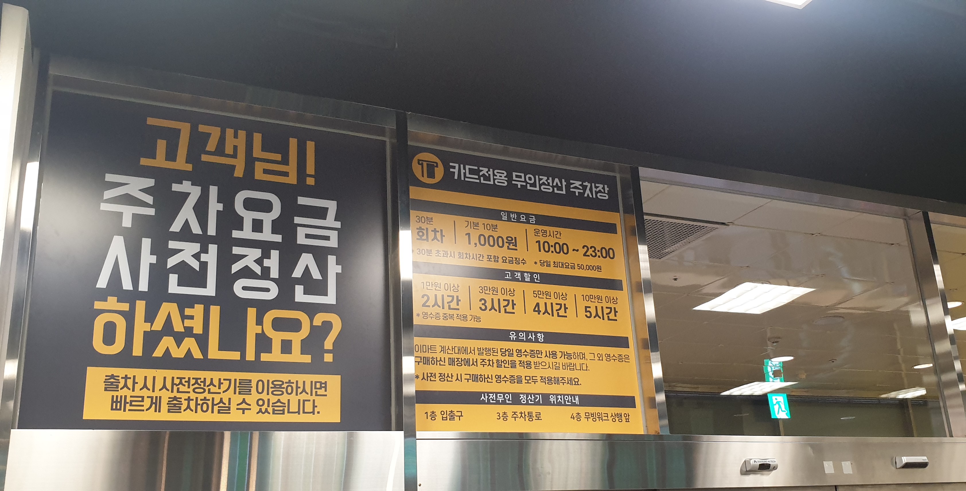매장에서 장을 본 뒤 영수증으로 주차 기계에서 정산하면 ok