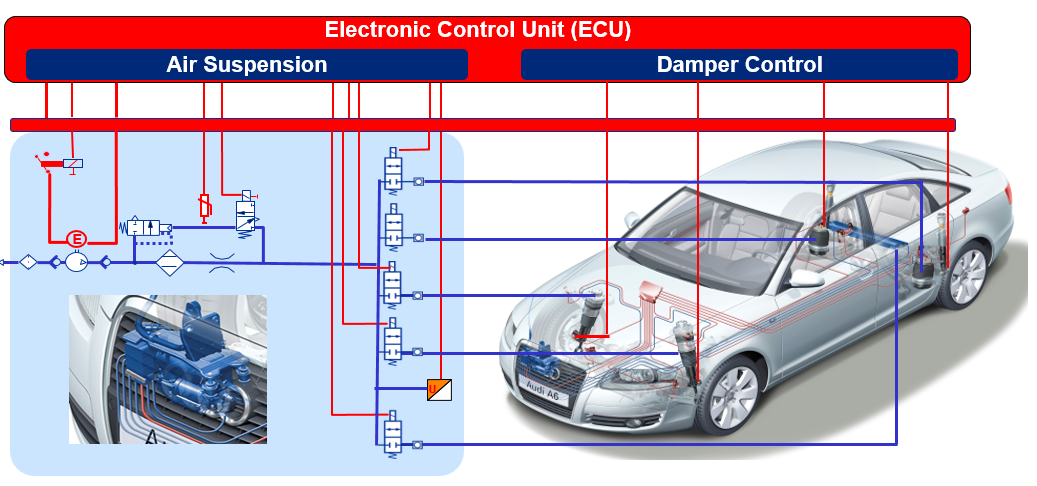 컴프레서, 솔레노이드 밸브, 에어 스프링은 ECU의 신호를 받아 동작을 합니다