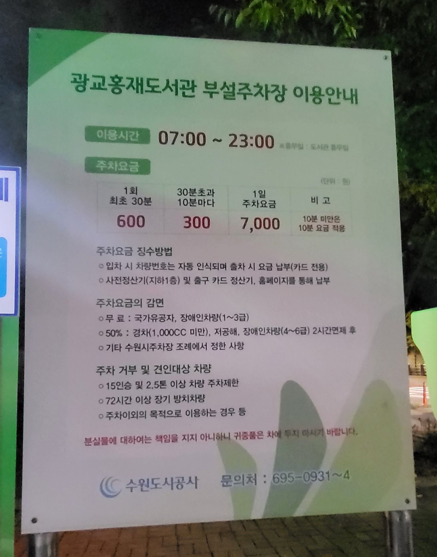 광교역 근처에 위치한 광교 홍재도서관 주차 공간 및 요금에 대해 알아봅시다
