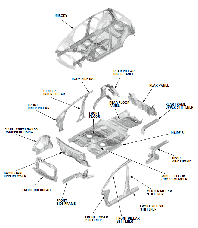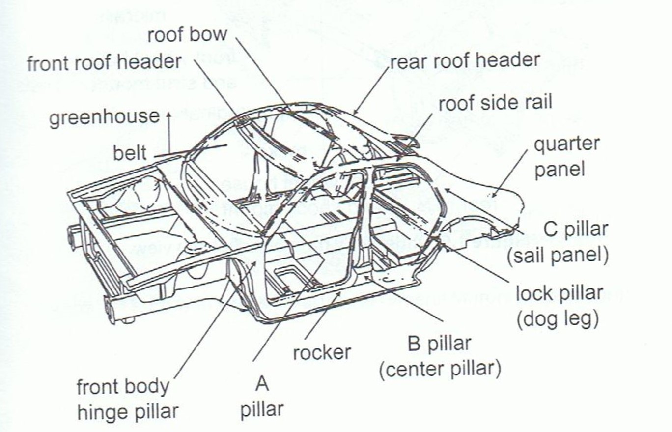 자동차 바디의 주요 구조입니다
