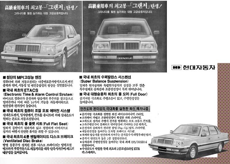 당시 1세대 그랜저는 현대의 플래그십 모델로 수입차에도 대응할 수 있는 수준 이었습니다