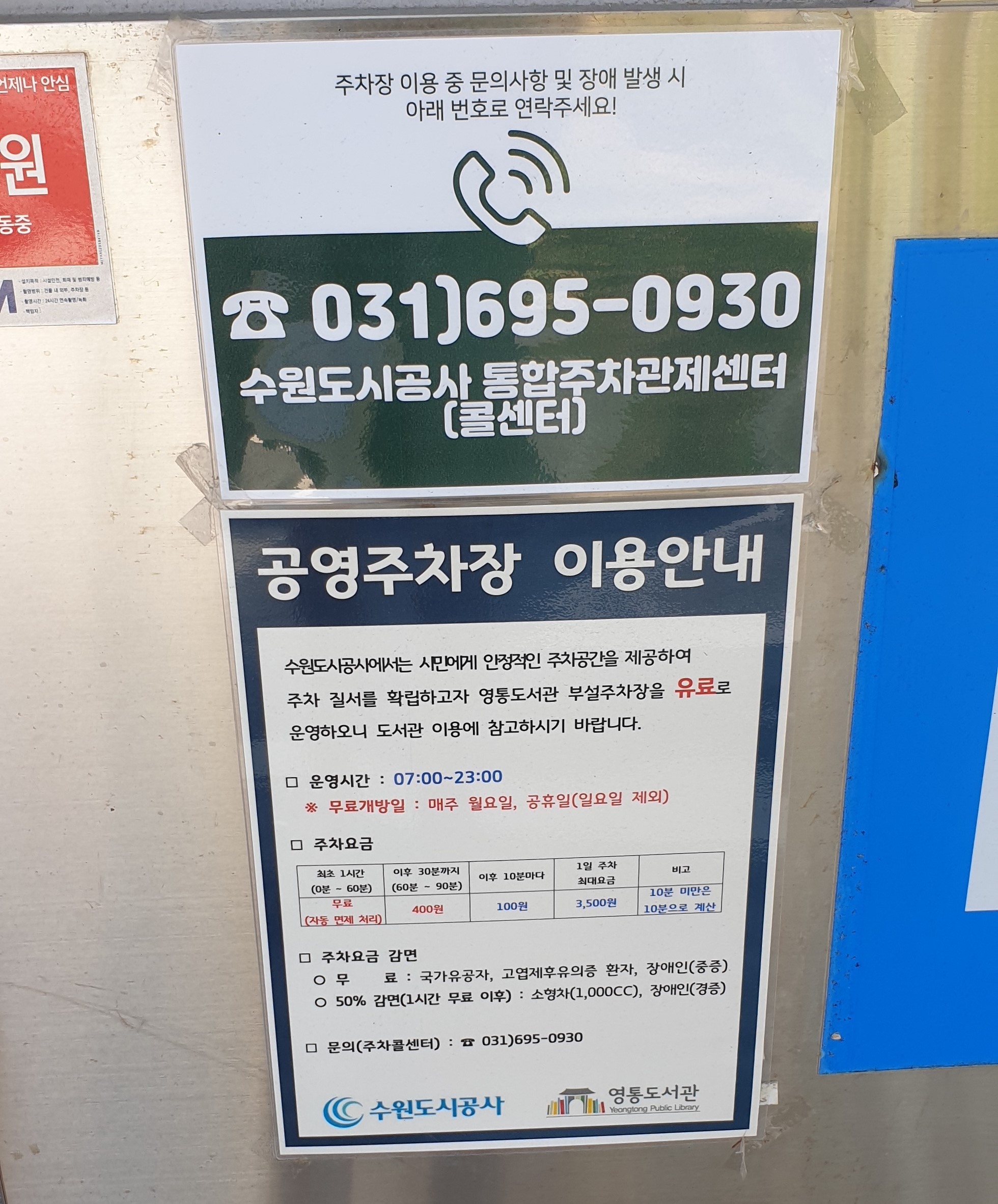 주차장 이용 시 문의사항은 수원도시공사에 전화를 통하면 ok