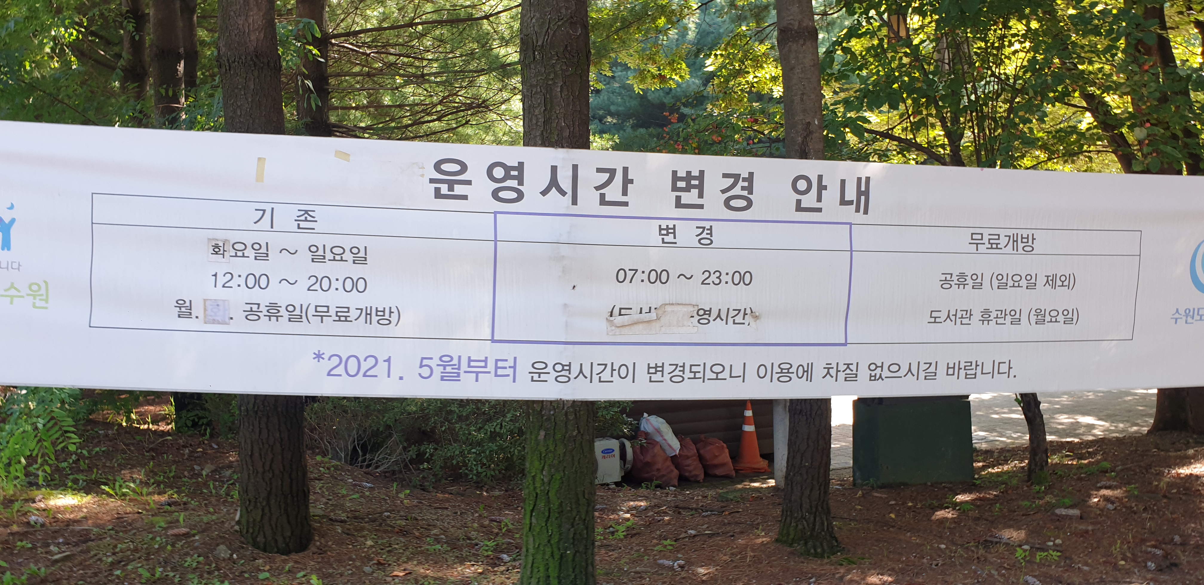 수원 영통 도서관 주차장 규모 사진과 주차 시간 및 요금입니다