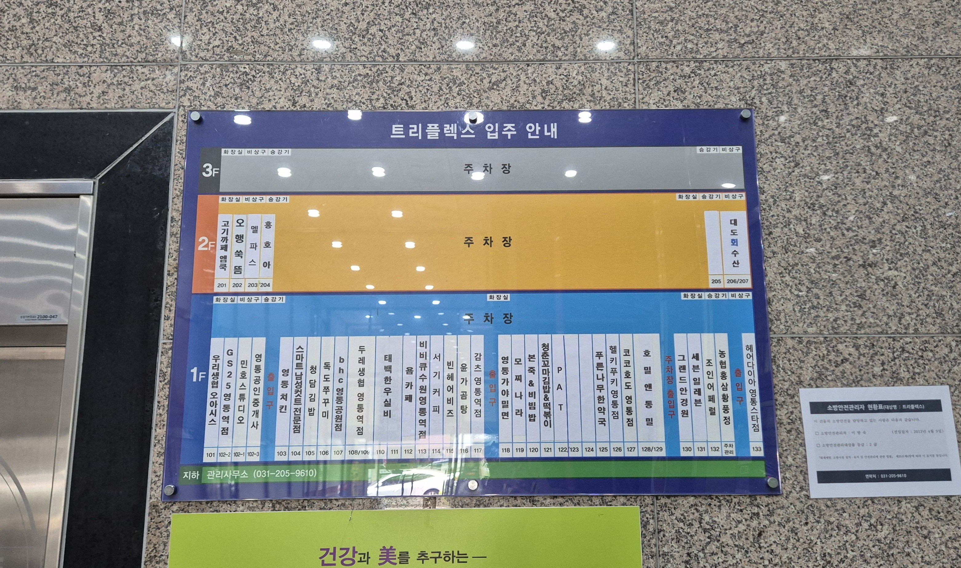 1층에는 식당, 편의점 등을 포함한 상점가들이 입점해 있어요