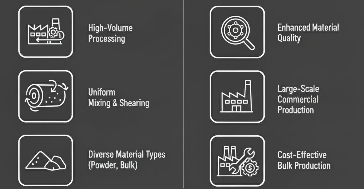 - 원료 혼합 및 전단 작용으로 소성 균일성 및 품질 향상