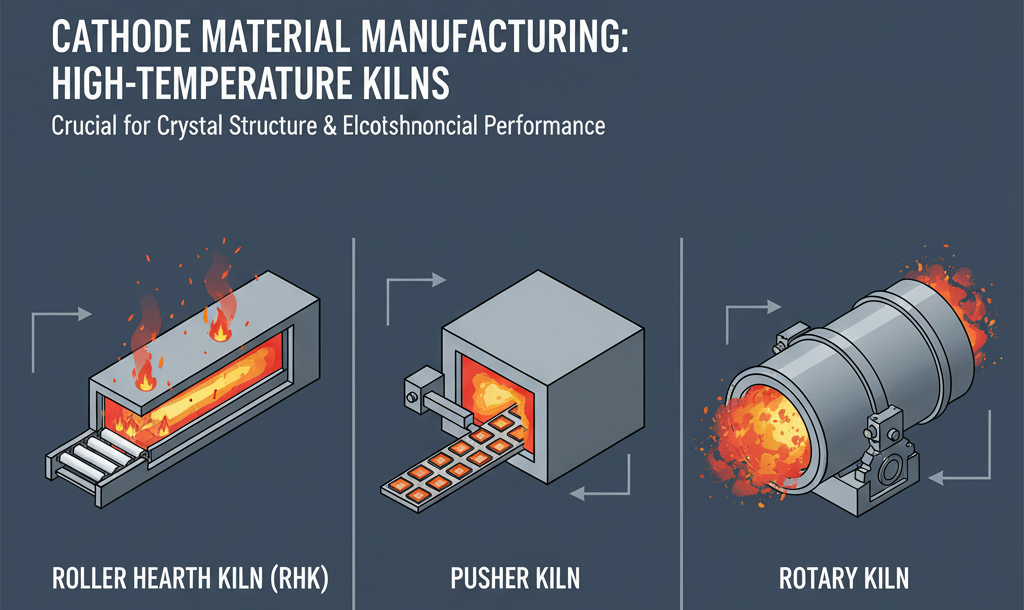 양극재 제조에서 필수적인 고온 열처리 설비인 소성로는 재료의 결정 구조와 전기화학적 성능을 결정짓는 핵심 설비입니다. 여기서는 롤러 하스 킬른(RHK), 푸셔 킬른, 회전로 각 소성로의 의미, 작동 원리, 주요 특징과 사용 목적을 균일한 구조로 정리하여 심층적으로 이해할 수 있게 설명합니다.