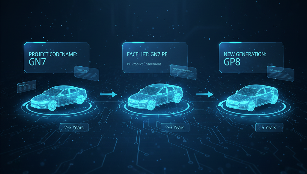 코드네임은 자동차 제조사가 신차 개발 프로젝트를 진행할 때 차량을 식별하기 위해 붙이는 내부 개발용 이름입니다. 정식 차량명이 확정되기 전까지 연구개발팀, 생산팀, 품질관리팀 등 모든 부서에서 이 코드를 사용해 차량을 구분하죠. 보통 풀체인지는 5년 주기, 부분변경(페이스리프트)은 2~3년 주기로 이뤄지며, 세대가 바뀔 때마다 새로운 코드네임이 부여됩니다.