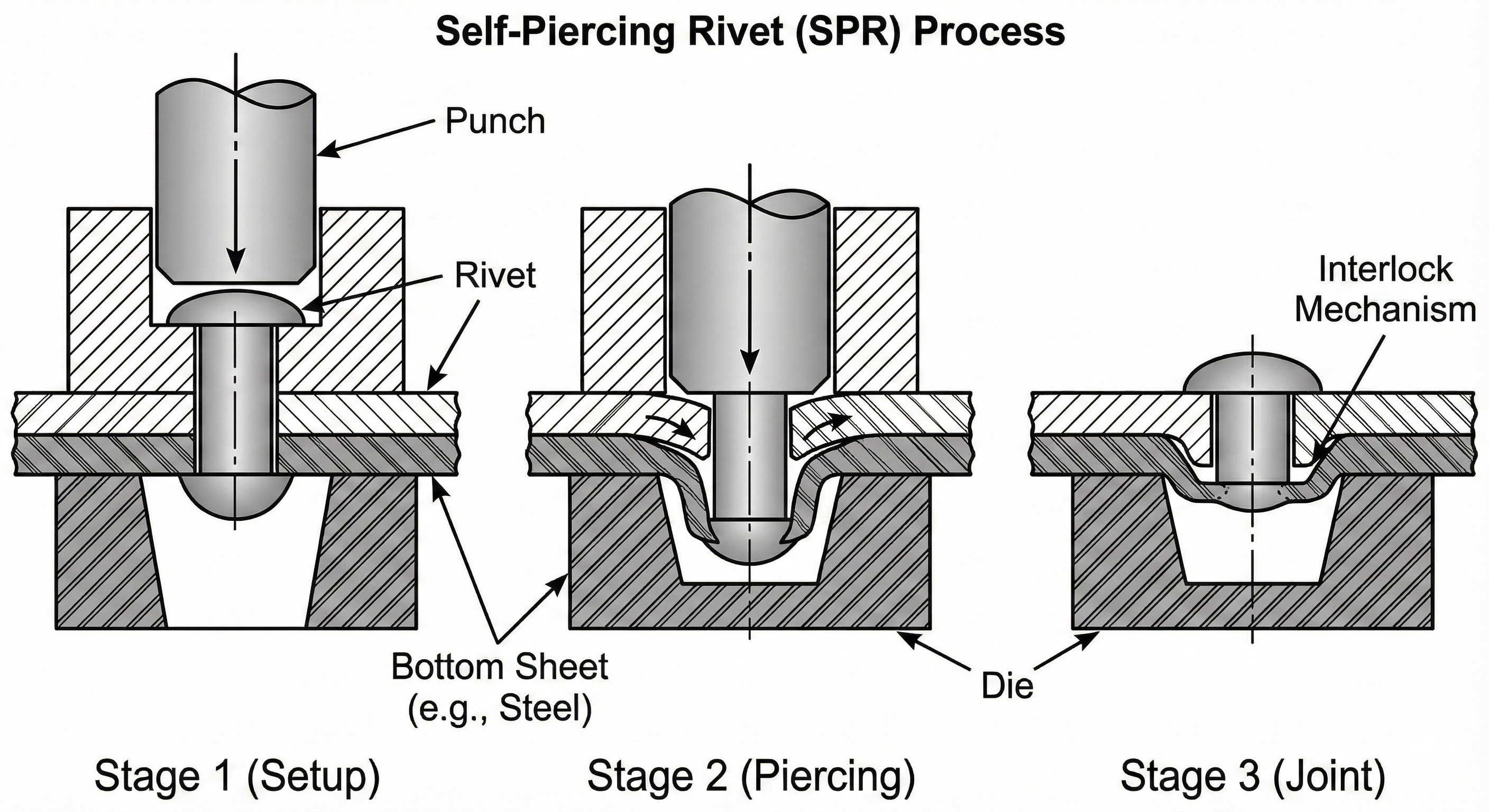 또한, 철과 알루미늄처럼 녹는점이 달라 용접이 불가능한 이종 소재를 결합하기 위해, 리벳을 강제로 박아 넣는 SPR(Self-Piercing Rivet) 같은 기계적 체결 기술도 필수적으로 사용되는 추세입니다.