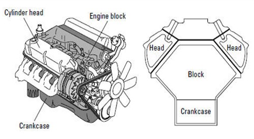 자동차 엔진에서 주요 운동을 담당하는 파트는 실린더 헤드 / 엔진 블록 / 크랭크 케이스입니다. 크랭크 케이스에는 피스톤의 왕복 운동을 회전 운동으로 변화시키는 크랭크 샤프트가 들어있고, 실린더 블록에는 피스톤이 왕복하는 실린더가 모여 있습니다. 실린더 헤드는 실린더 윗부분을 씌우는 덮개로 피스톤, 실린더와 함께 연소실을 형성합니다