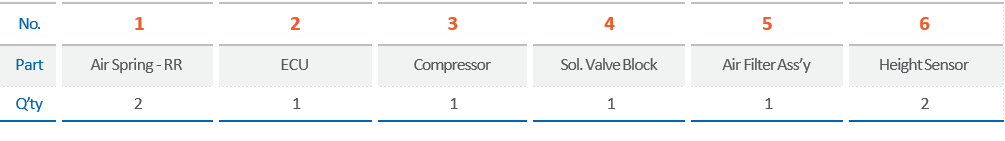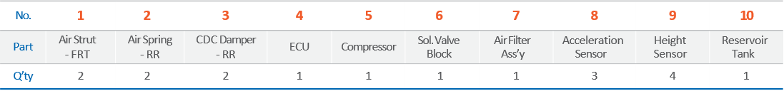 모비스 에어 서스펜션 시스템은 크게 2코너/4코너로 나눌 수 있습니다.