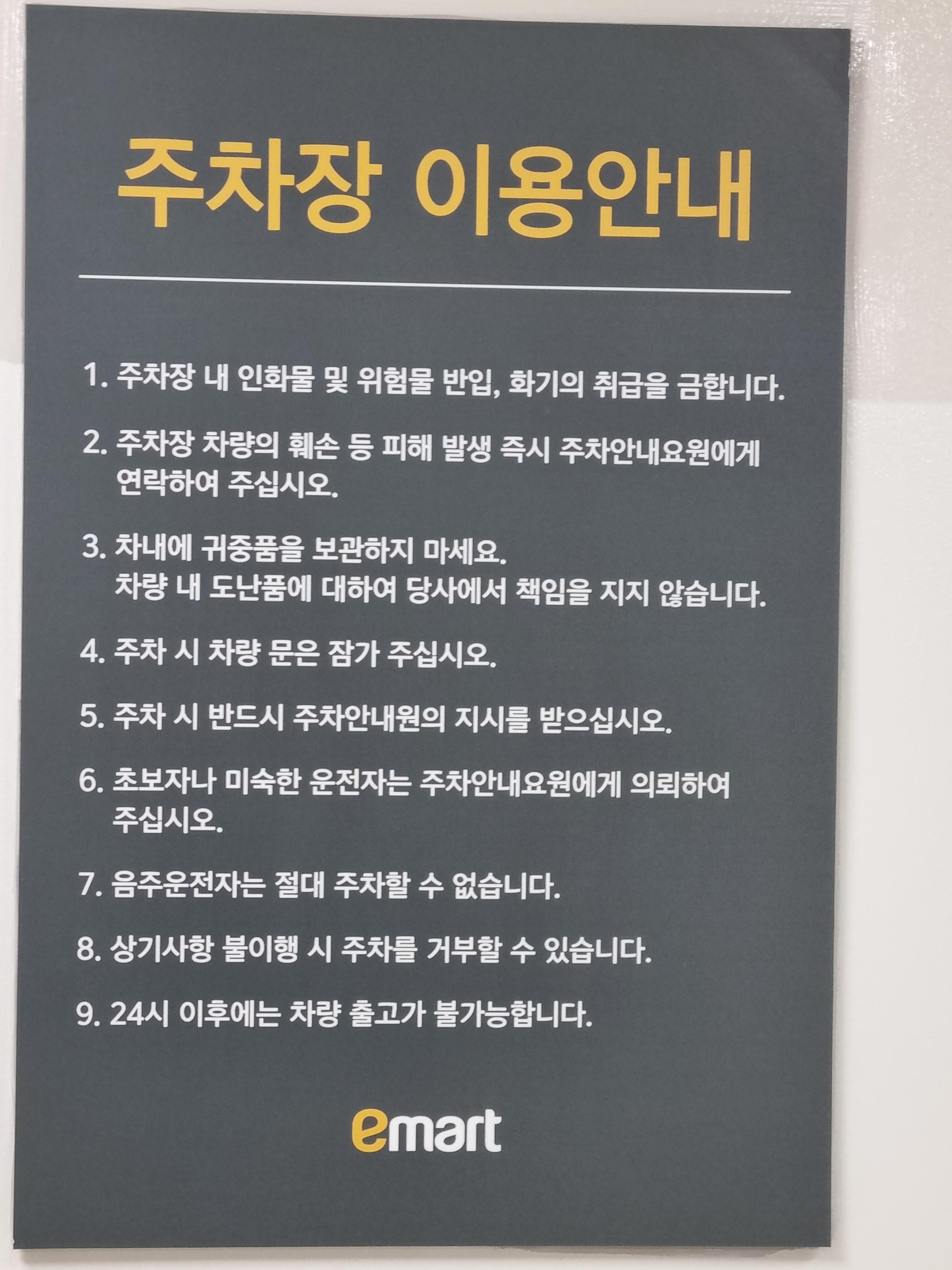 이마트 광주점 주차 이용 및 요금 정보입니다