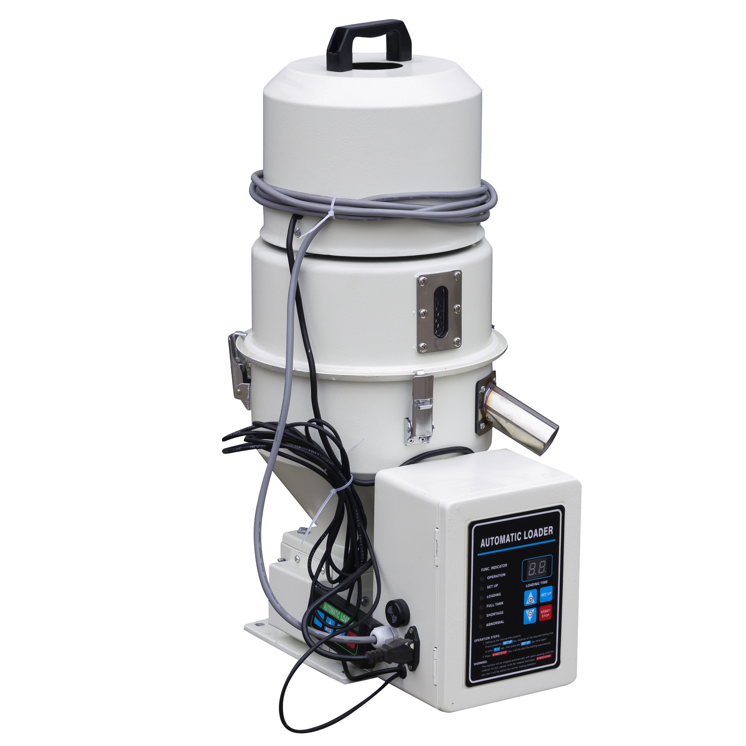 로더는 공압으로 원재료를 이송하는 장치입니다. 재료 탱크-드라이어-사출기 등 각 사출 공정 라인 사이 사이에 설치되어 이송 방향에 공압을 형성하여 원재료를 운반합니다. 밸브와 비슷한 역할로 볼 수 있죠. 이송 뱡항과 장착 위치에 따라 호퍼 로더, 단상 로더, 상향식 로더 등으로 나눌 수 있으며 필터, 재료 용량 감지 등의 기능을 하기도 합니다.