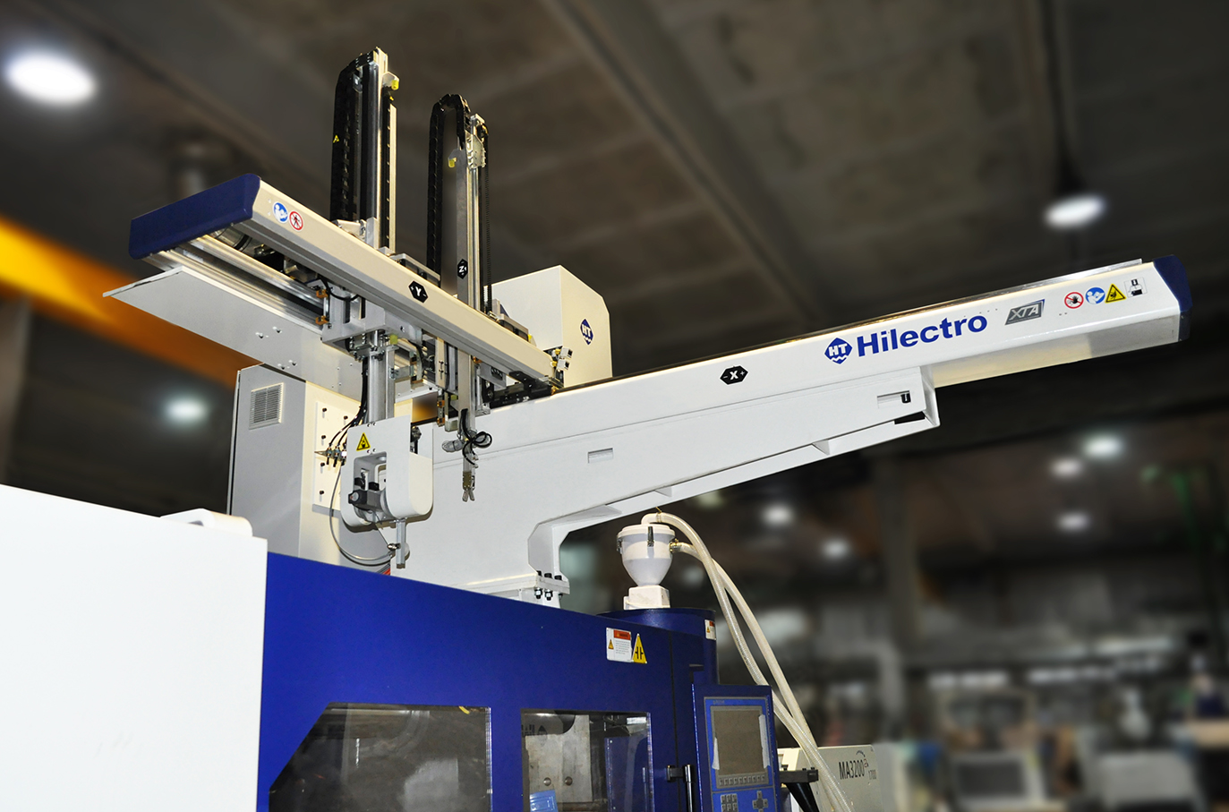 취출 로봇은 기본적으로 특정 동작을 변형 없이 높은 정확도로 반복 작동하며 이를 사용자가 방향, 속도, 동작 거리 등을 지정 할 수 있도록 프로그래밍 되어 있습니다. 대부분 사출기 위에 설치 되며 사출기와 시그널을 연결하기 때문에 두 장비는 실시간으로 통신을 주고 받으며 동작합니다. 사이클 타임의 최소화는 물론 작업자 안전 등을 위해서도 사출기-취출로봇의 연동은 꼭 필요합니다.