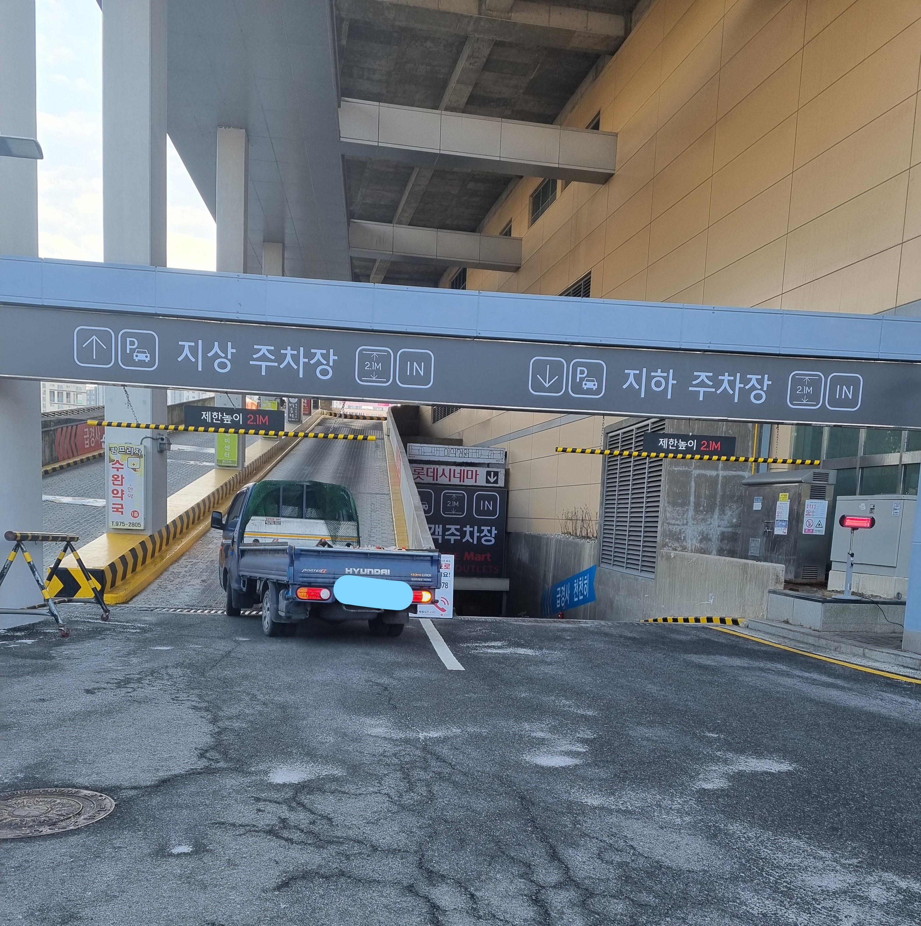 제한높이 2.2m로 승용차는 걱정할 필요없고요,