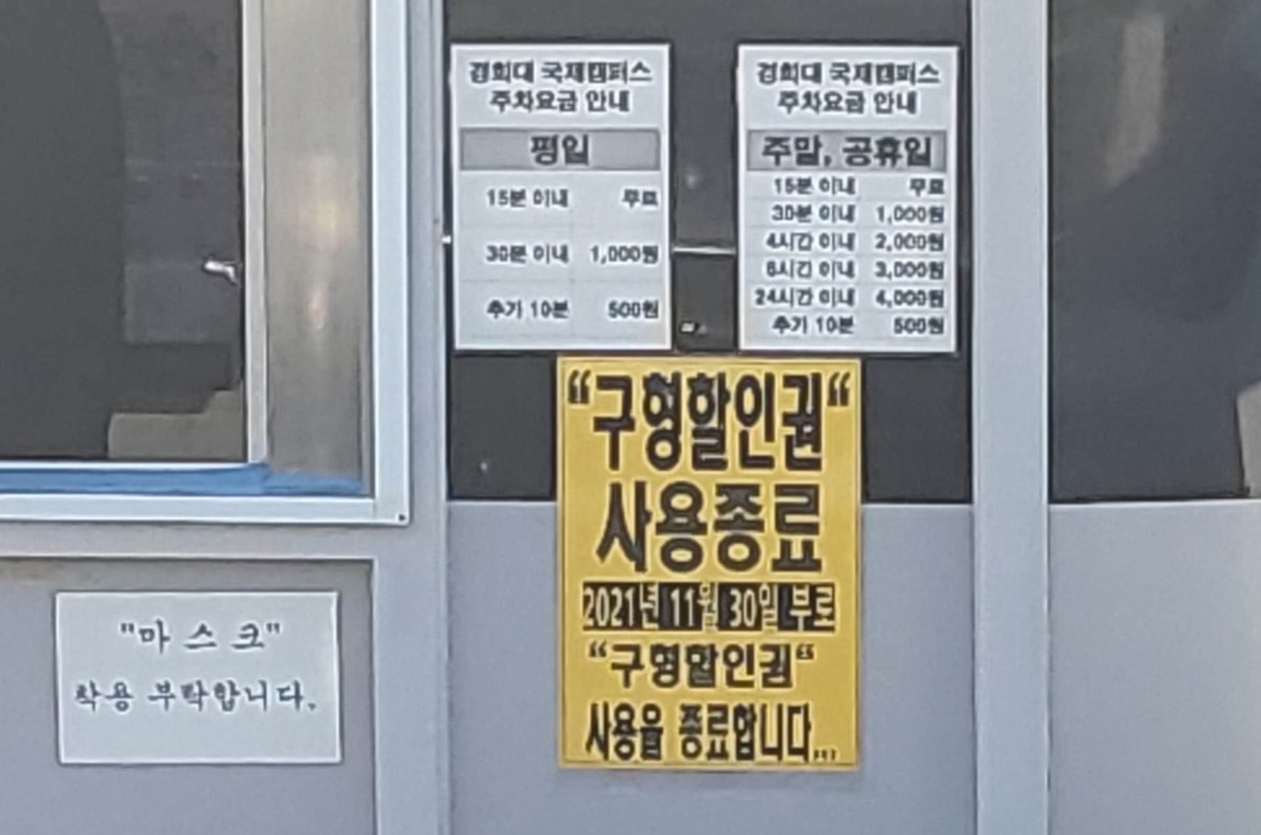 경희대 국제캠퍼스 주차요금 입니다